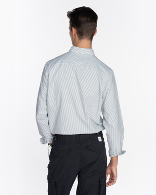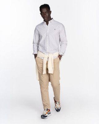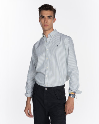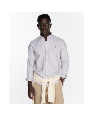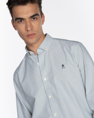 Esta camisa, un básico imprescindible, se ha confeccionado en 100% algodón suave y transpirable, con el clásico diseño de rayas. Disponible en cuatro colores versátiles, es perfecta para añadir un toque de estilo atemporal a tu vestuario. El emblema de la marca, bordado en el pecho, aporta un detalle distintivo y elegante.