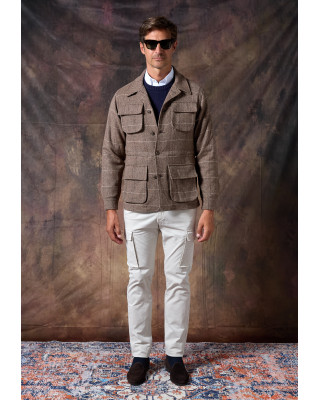 Una prenda versátil y atemporal, confeccionada en Portugal con 100 % lana italiana de alta calidad. Su patrón espiga aporta un aire clásico y distinguido, mientras que los cuatro bolsillos frontales, el cordón en la cintura y el cierre con botones la convierten en una opción práctica y elegante para otoño e invierno.